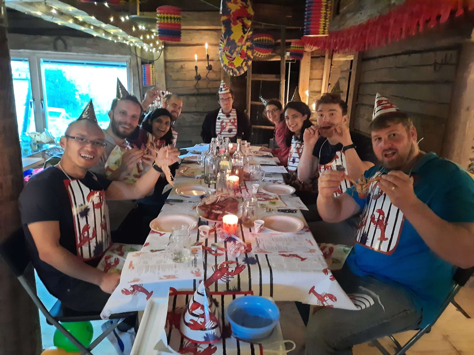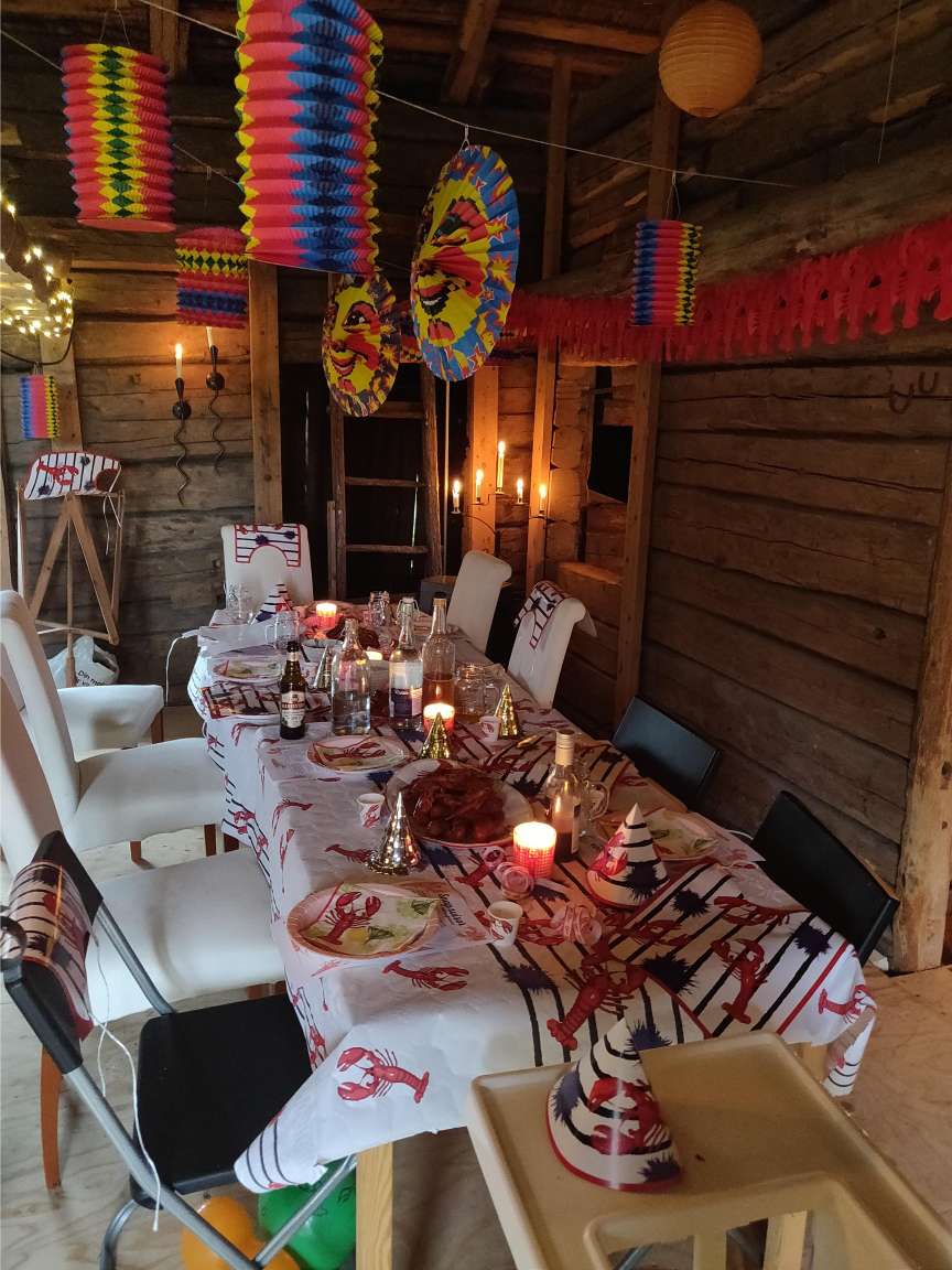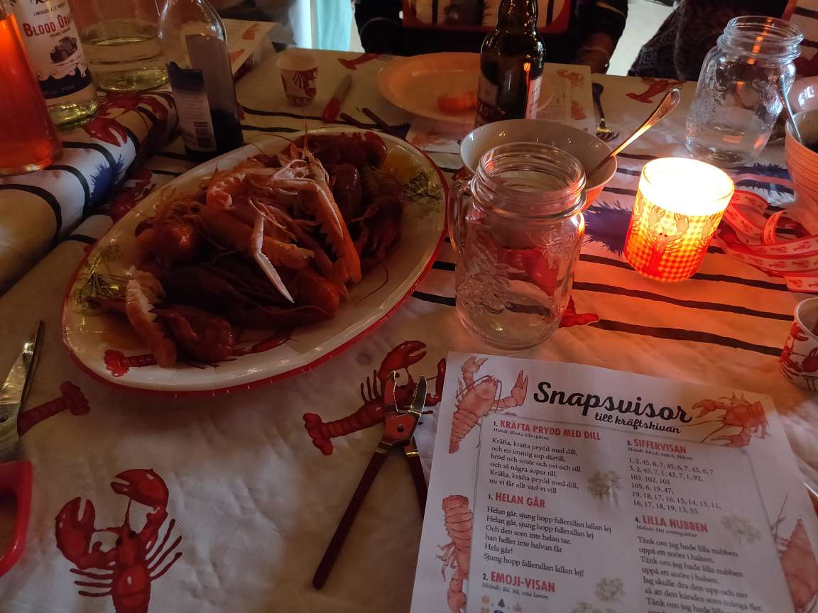 For sure he joined at the perfect time because he got directly into contact with a popular end-of-the-summer Swedish tradition – the crayfish party. At this festivity big platters full of red-cooked crayfishes are served, accompanied with Swedish songs (and occasional snaps), Västerbotten pie and optional other side dishes. The center piece of each crayfish party are for sure the crustacea and it is a must to have matching decoration – from the tablecloth, to napkins and party hats.